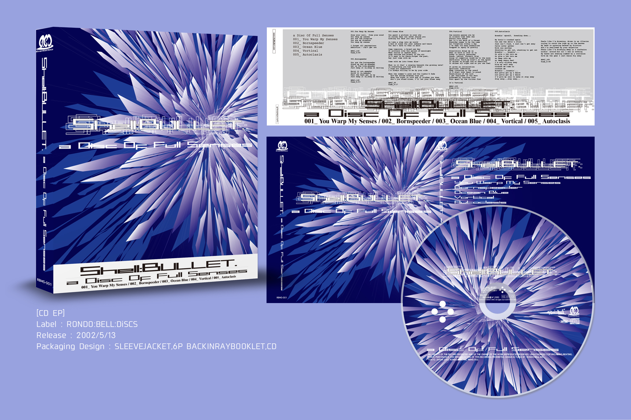 「a Disc Of Full Senses」と同時発売。「超感覚」を自分なりに視覚化、グラフィック化を試みたもの。すべてイラレで制作。制作当時イラレ8くらいで、斜め線を多用するとシャギーが出まくりでどうしたものかと。