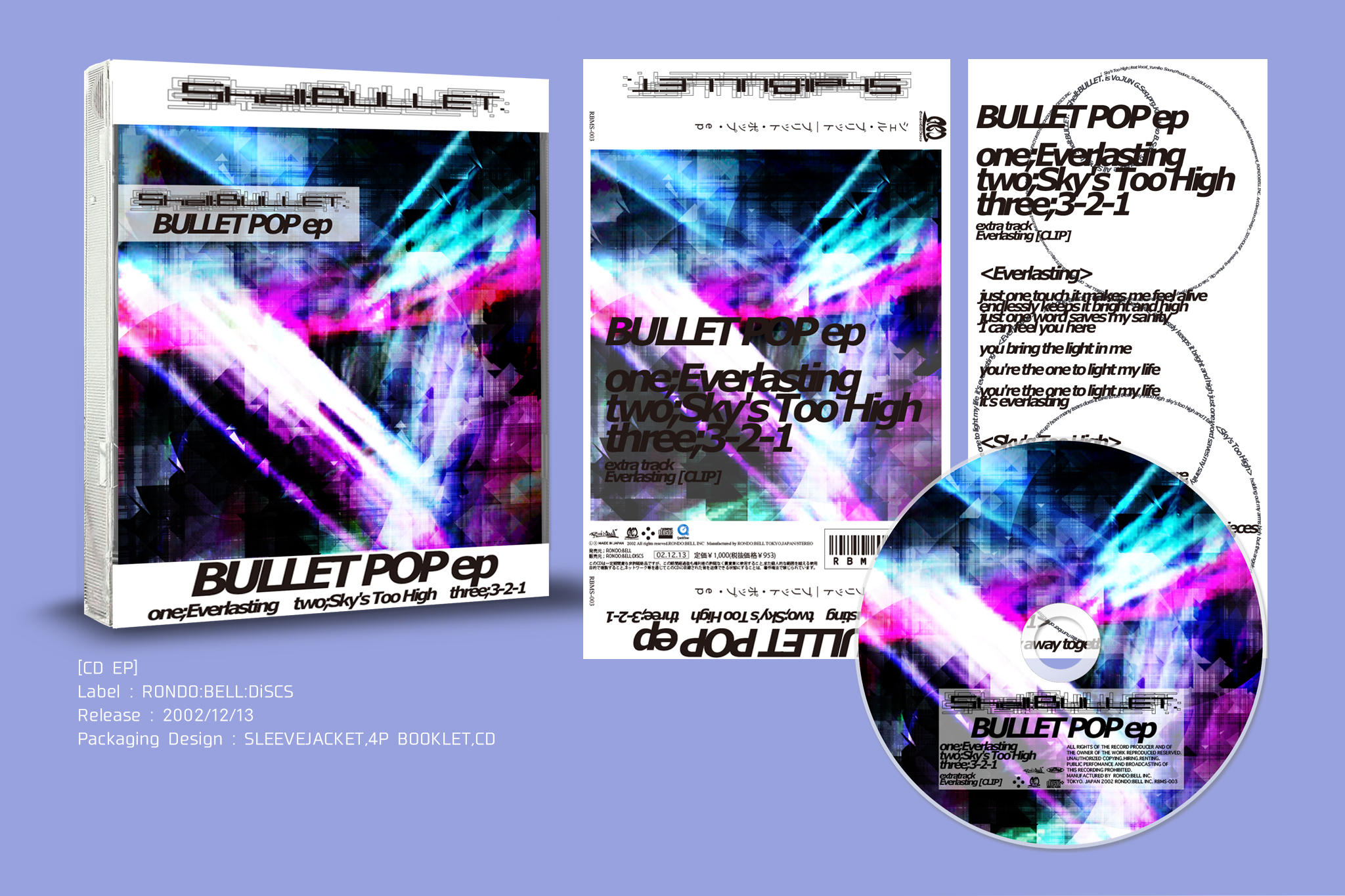 「shell ep」をリリースした時、いつか「BULLET ep」を出せたら、、、の実現化。「Britpop」を茶化したタイトル。3人の光線が暗闇の中で交わるイメージでデザイン。