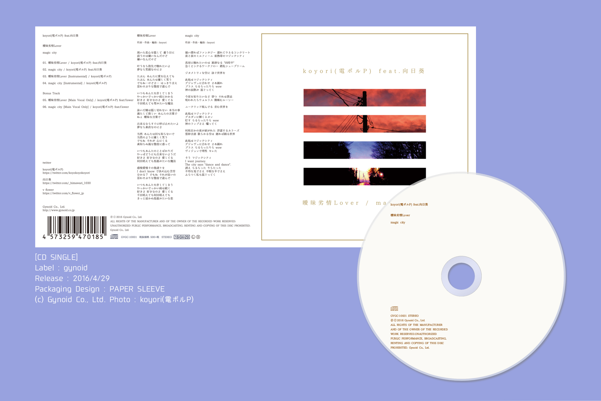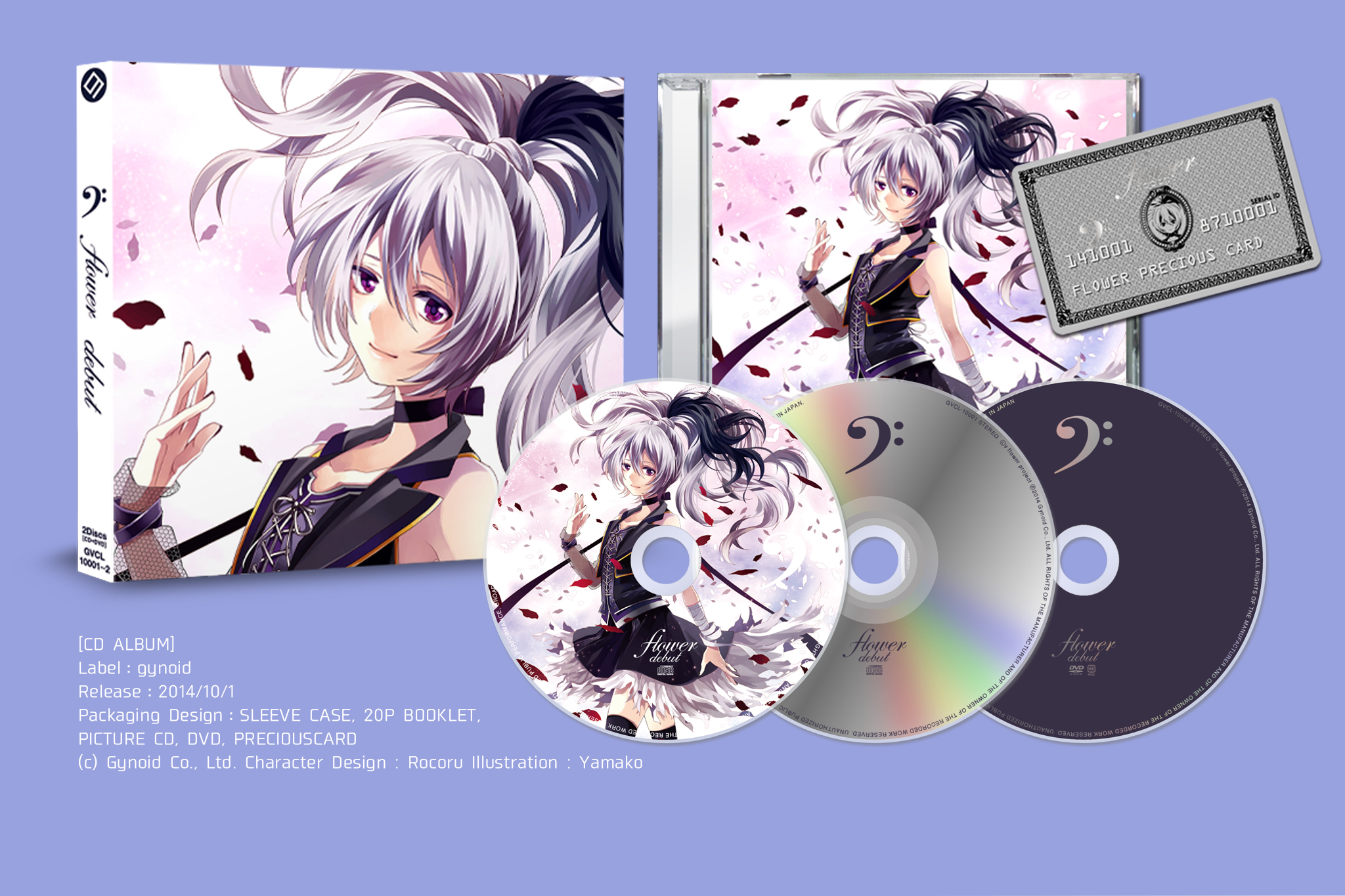 ボーカロイドキャラクターの「flower」の1st ALBUM。1stはとにかく豪華に!とうことで、Amazon限定のピクチャーディスクにDVD、謎のプレシャスカード、三方背BOXと近年にない豪華仕様のALBUMに。このジャケット制作はたのしかったな。