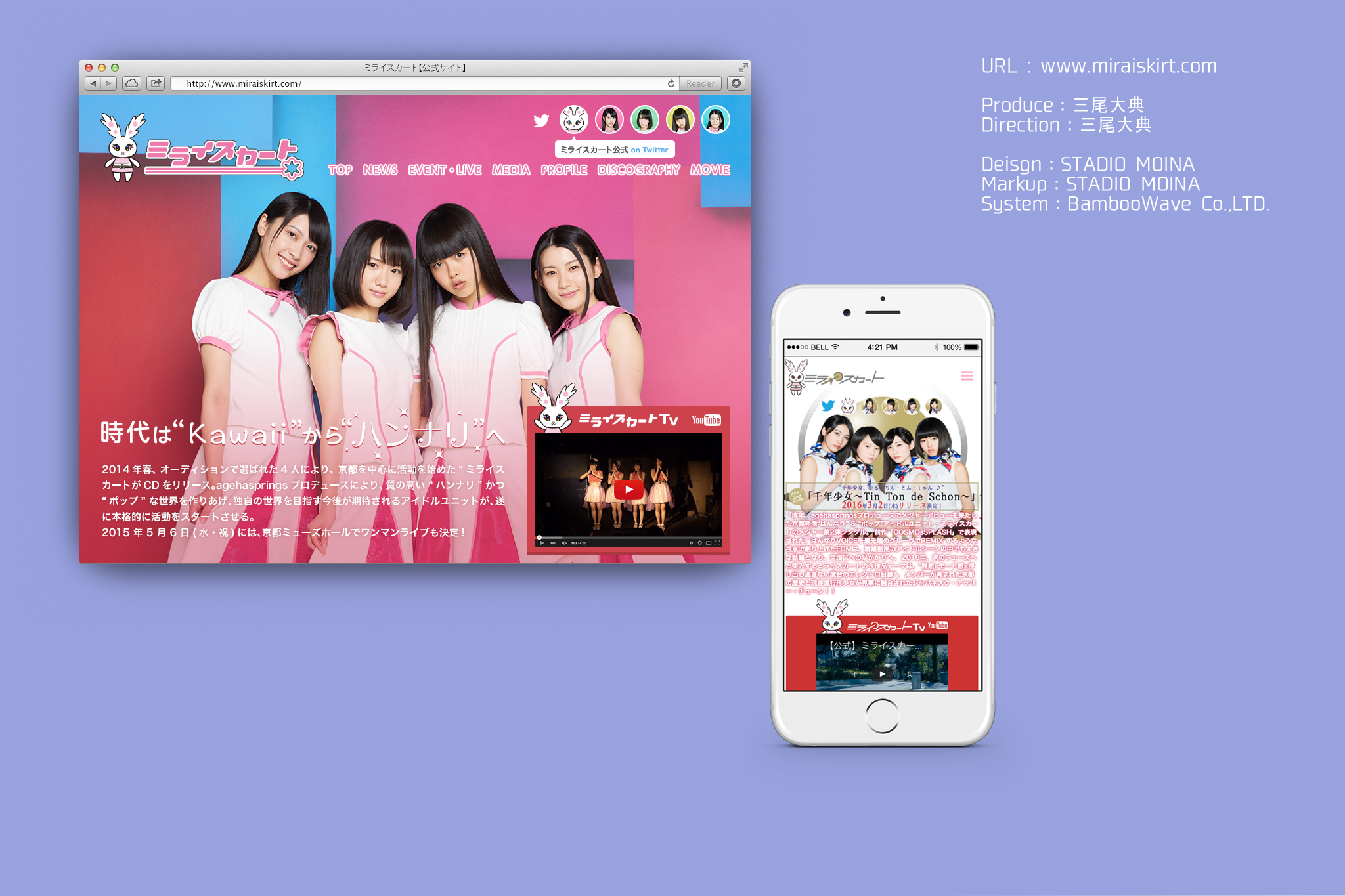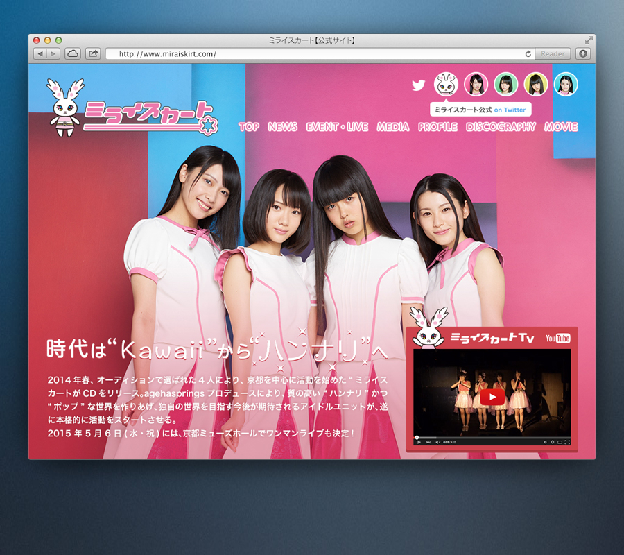 アイドルの魅力を最大限魅せるために、グループのコンセプトでもある「はんなり」をテーマに、パララックスを用いてビジュアルと最新情報を生かす仕組みを取り込みました。