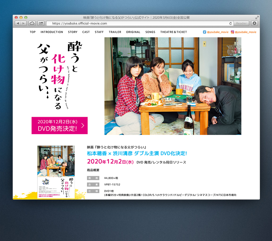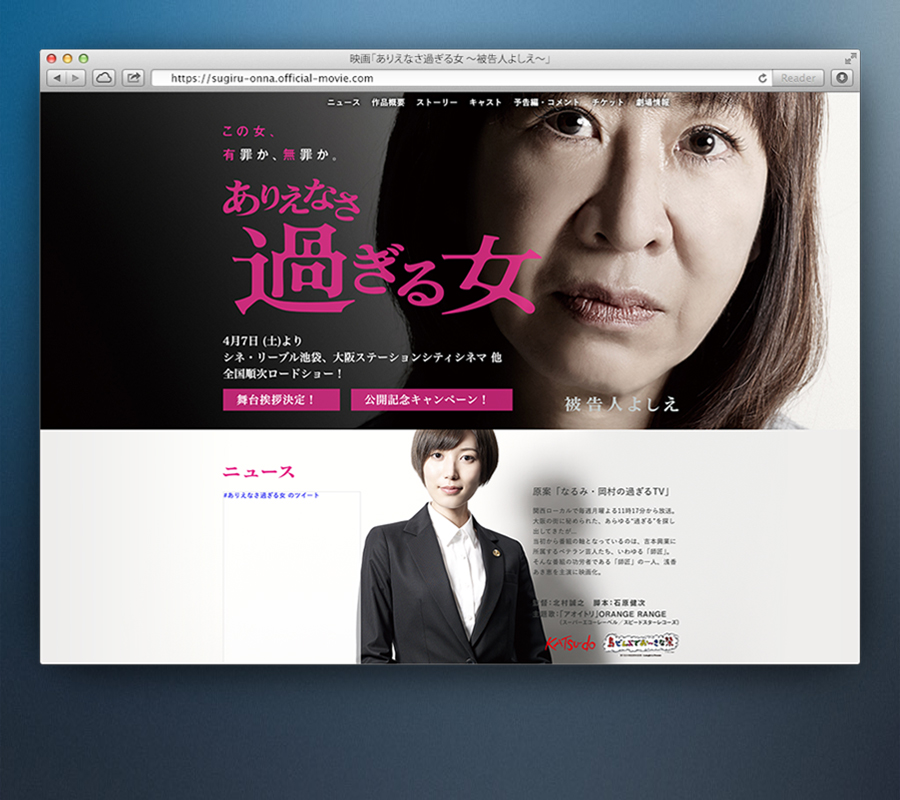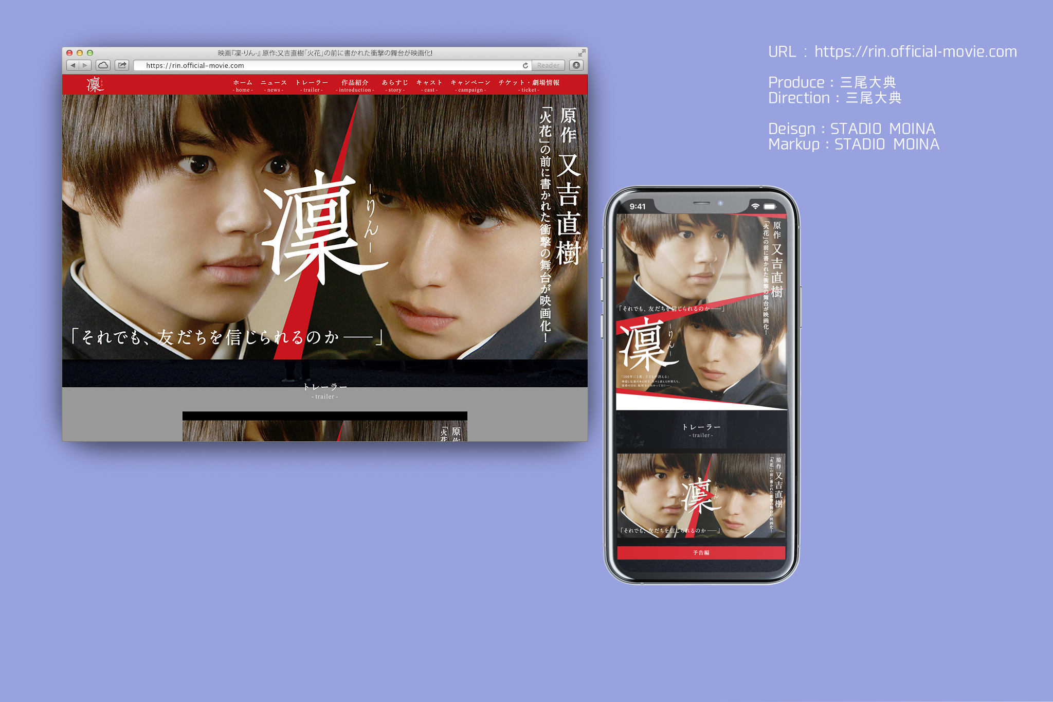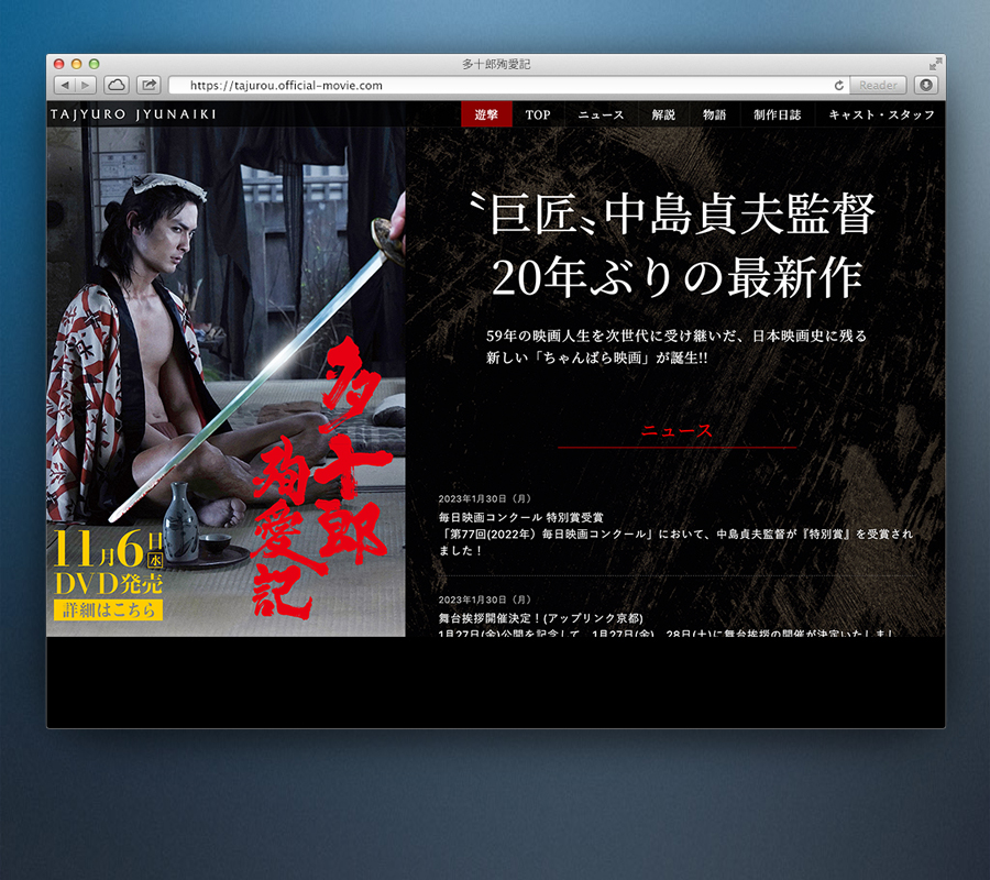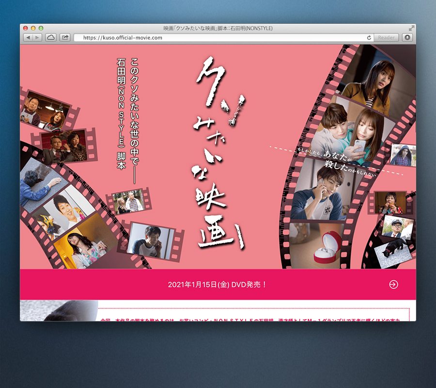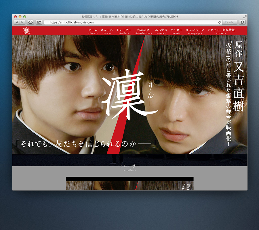 当たり前ですが、いいビジュアルをもらえるとサイトが作りやすいです。映画ビジュアルらしいレイアウトなのでサイトも映画サイトらしい構成をとっています。いいビジュアルには余計なレイアウトはいらないのです。