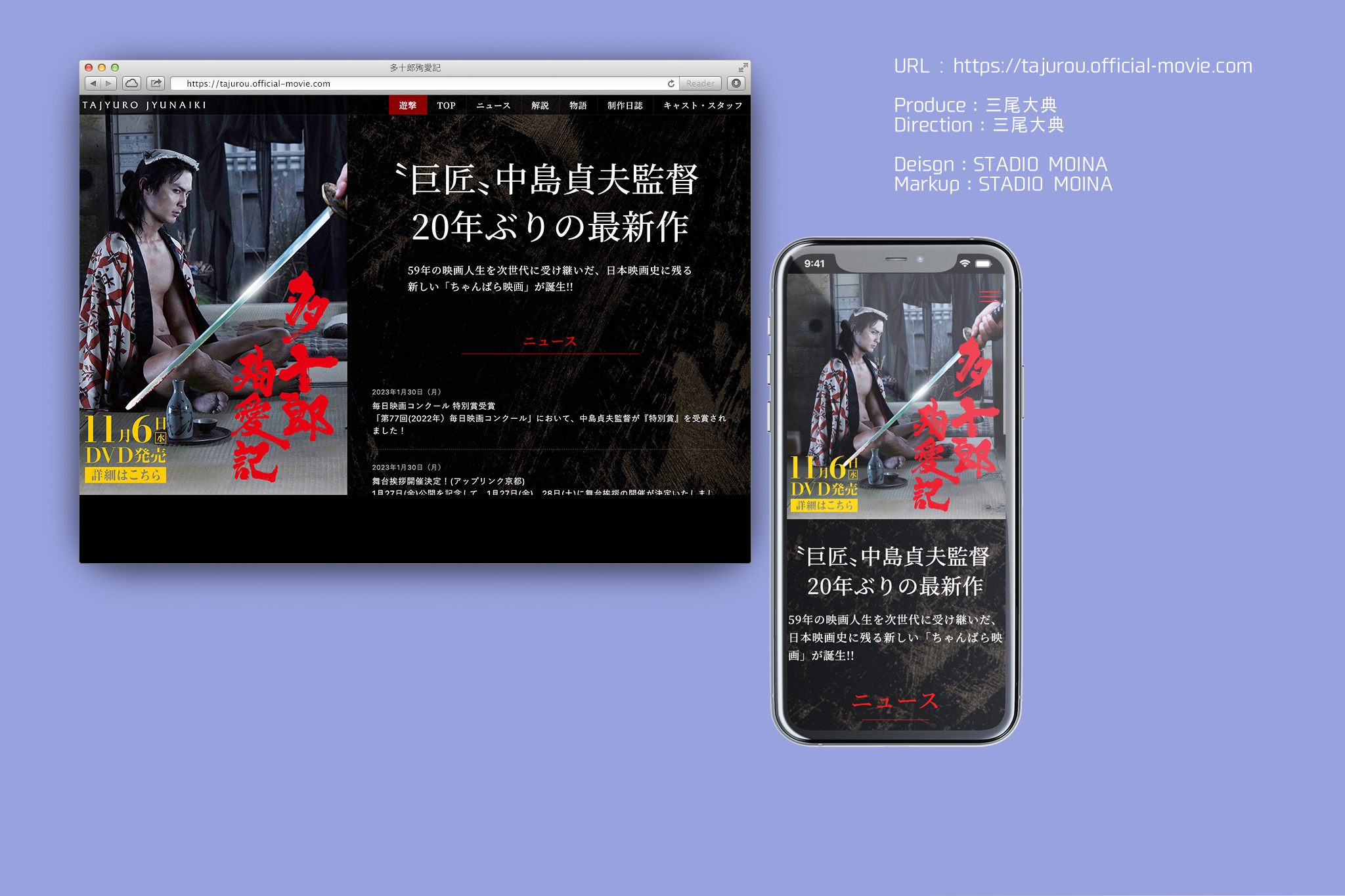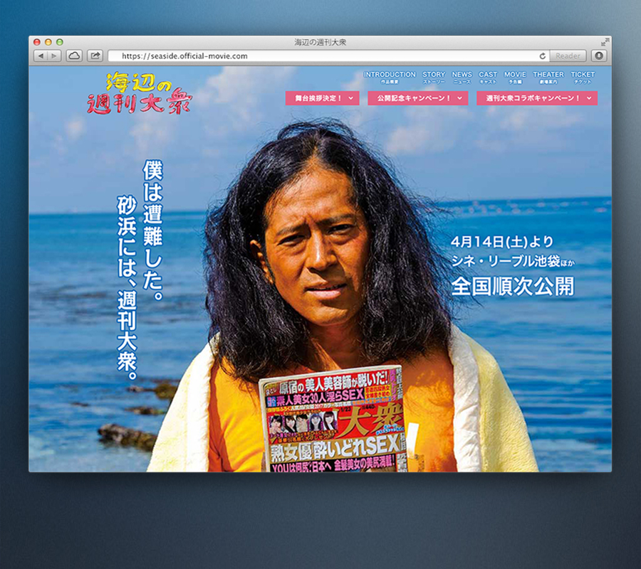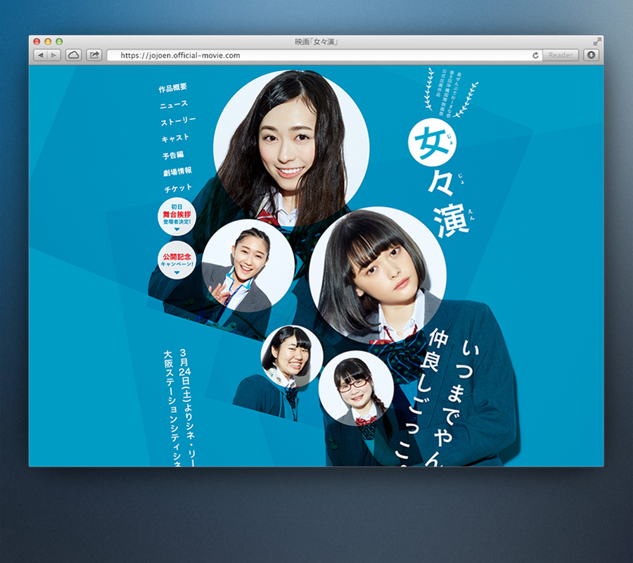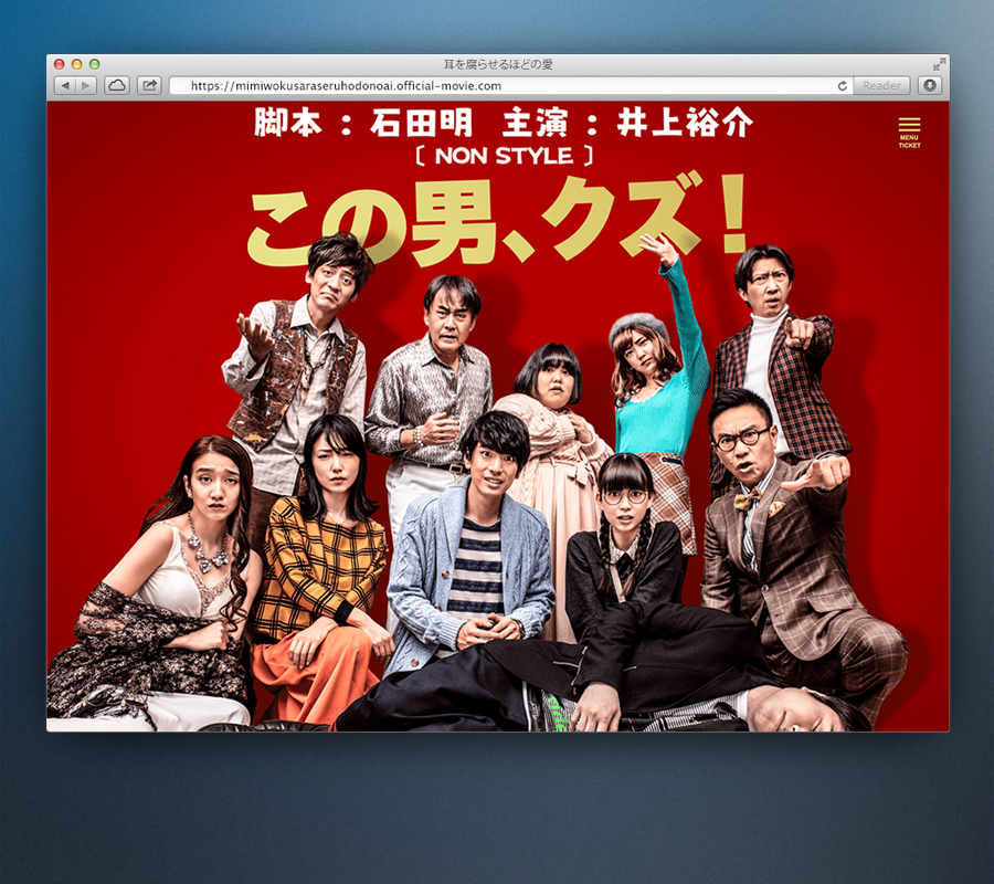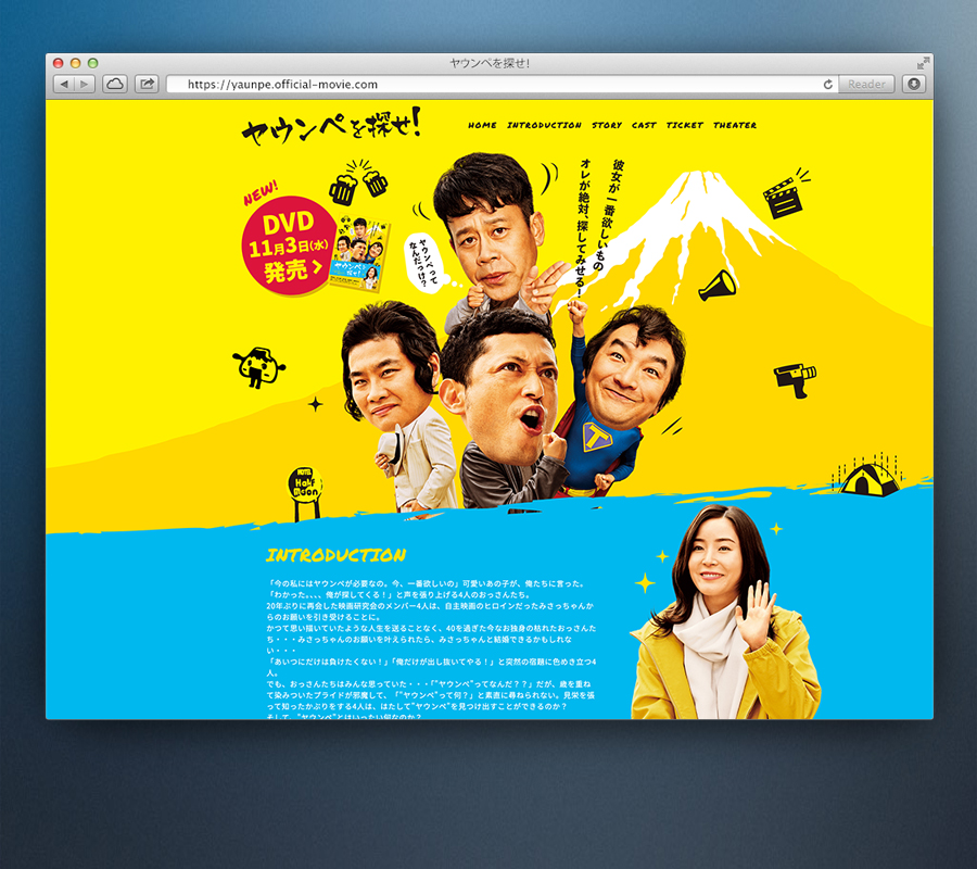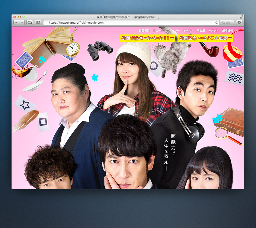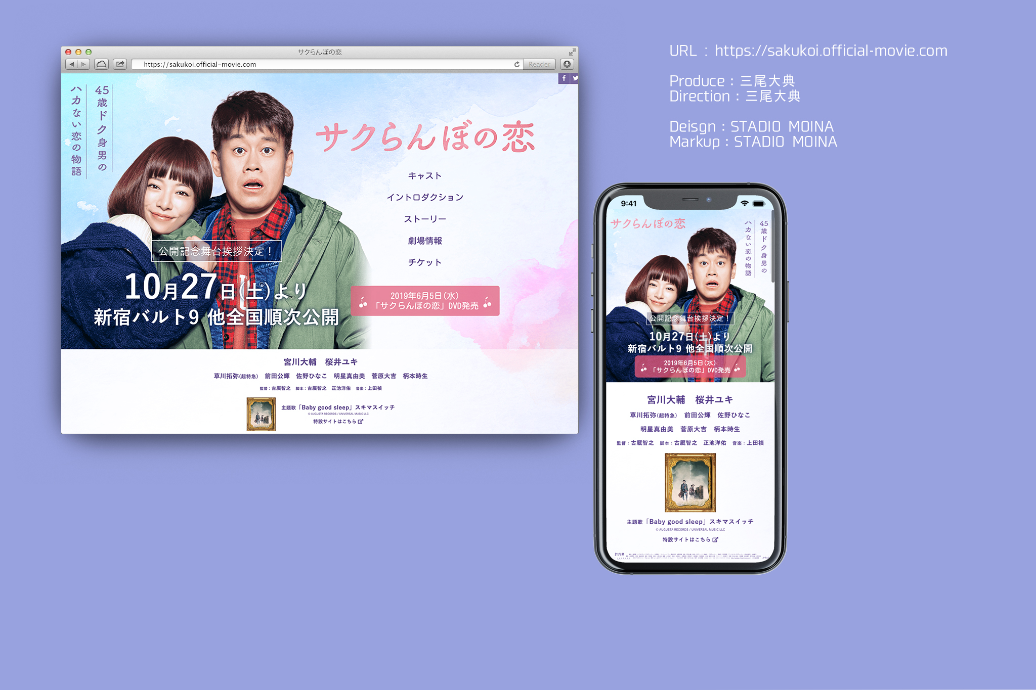 当たり前ですが、いいビジュアルをもらえるとサイトが作りやすいです。映画ビジュアルらしいレイアウトなのでサイトも映画サイトらしい構成をとっています。いいビジュアルには余計なレイアウトはいらないのです。