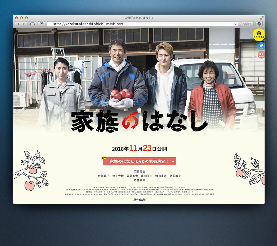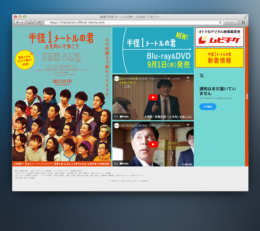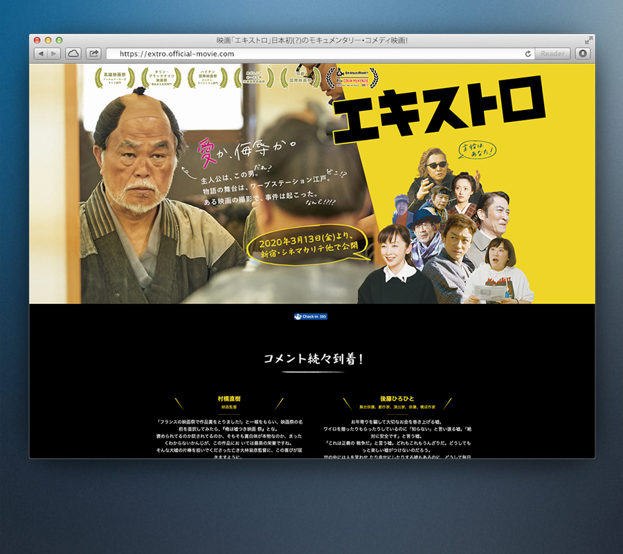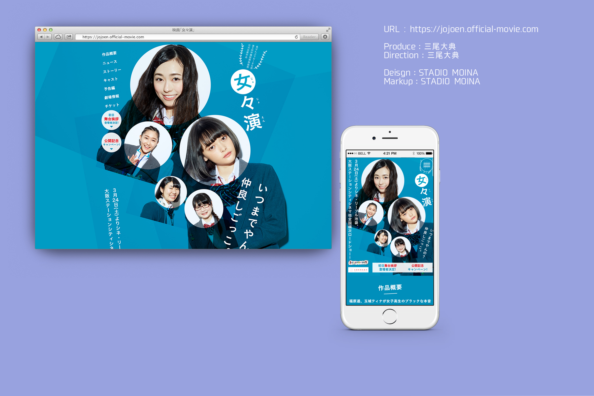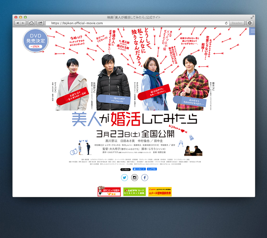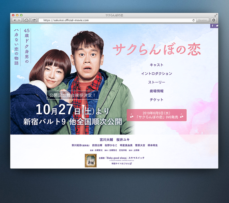 当たり前ですが、いいビジュアルをもらえるとサイトが作りやすいです。映画ビジュアルらしいレイアウトなのでサイトも映画サイトらしい構成をとっています。いいビジュアルには余計なレイアウトはいらないのです。