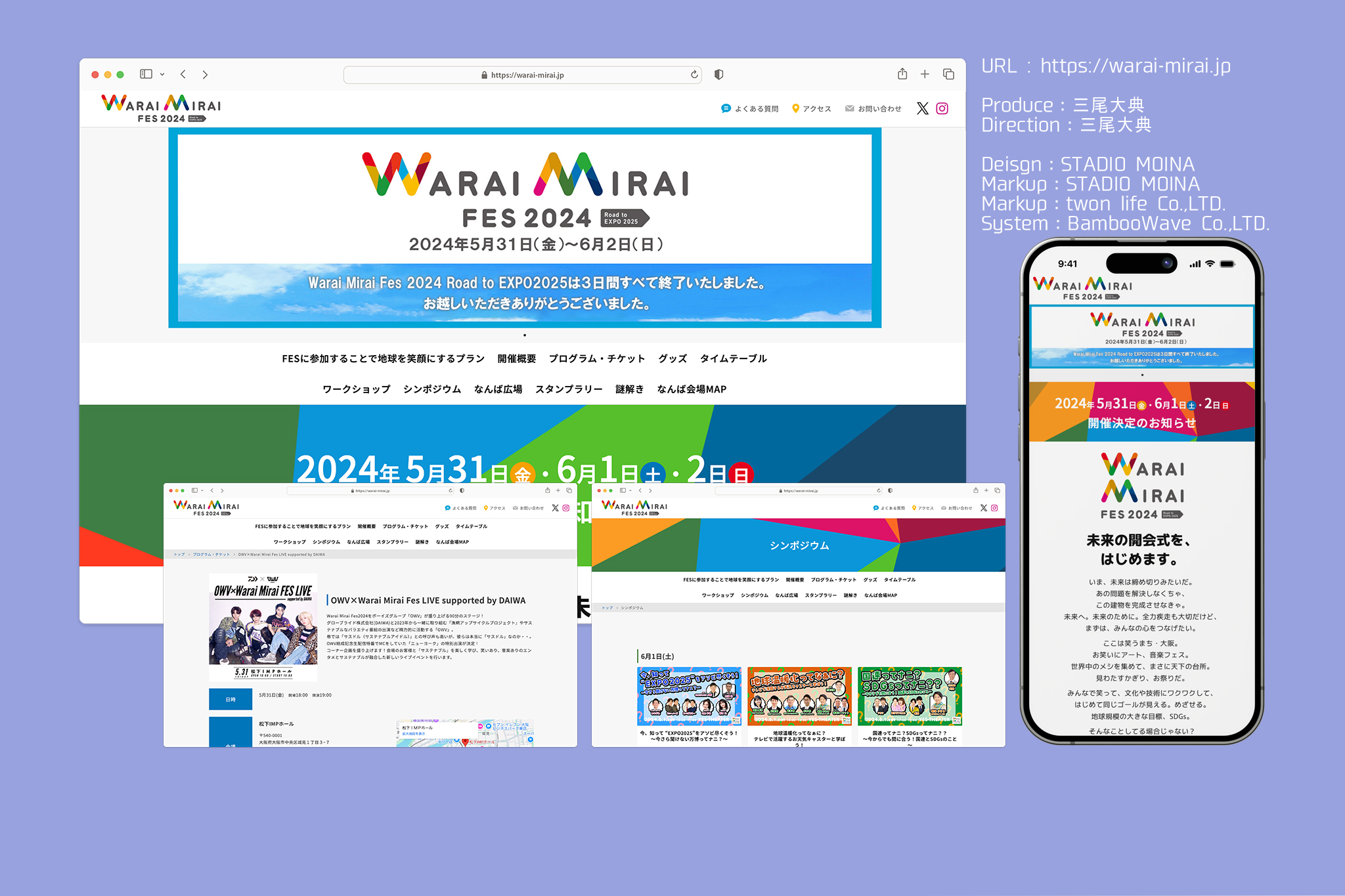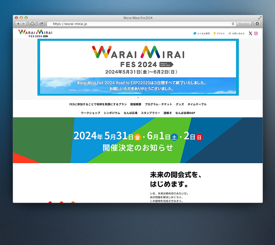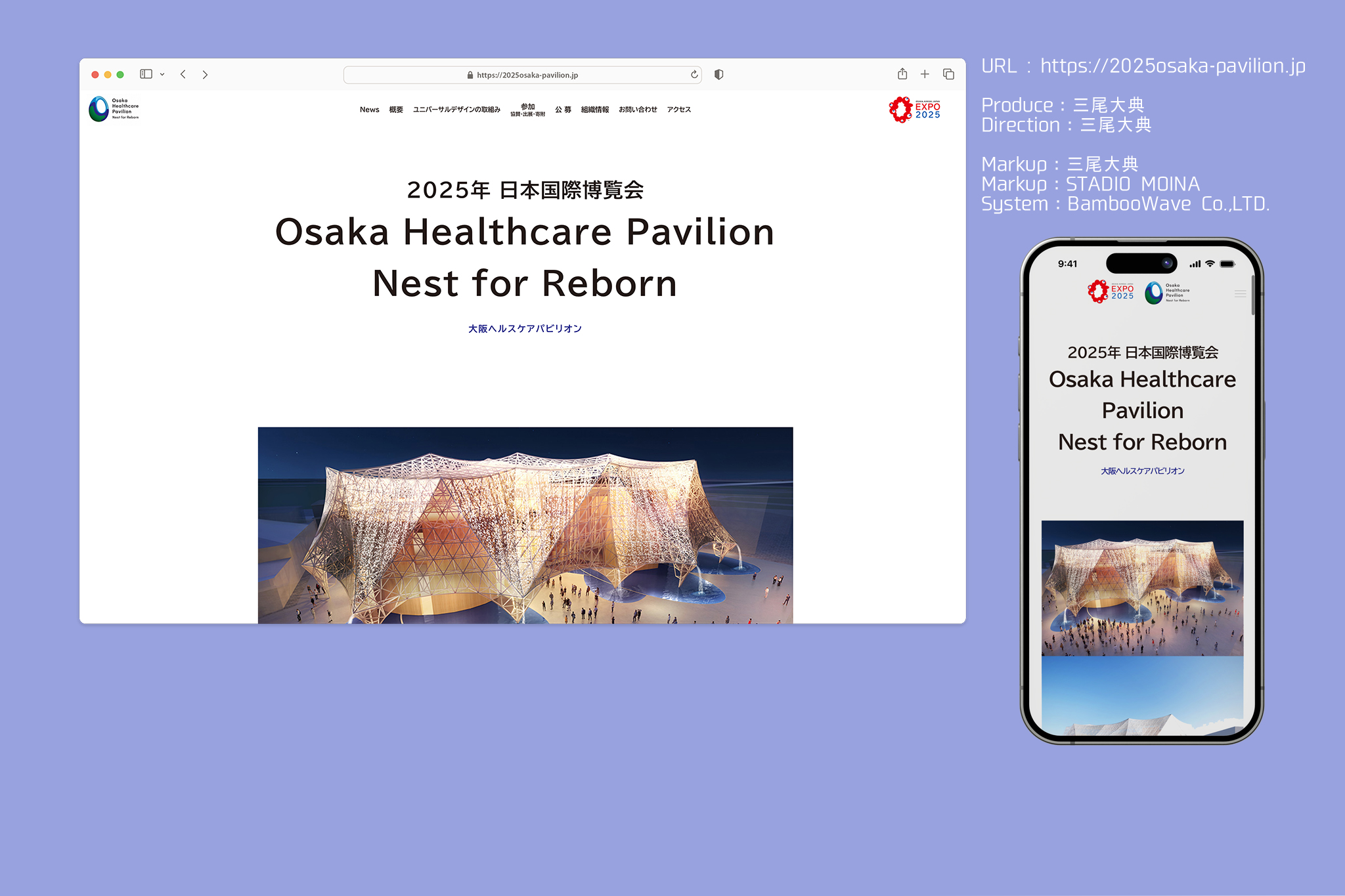 2025年開催の大阪万博のパビリオンの一つ。運営を担当しました。キーカラーの変更対応、ダウンロードファイルの整理など、見えない箇所や不具合をすべて解消しながらなのでかなり時間がかかりました。