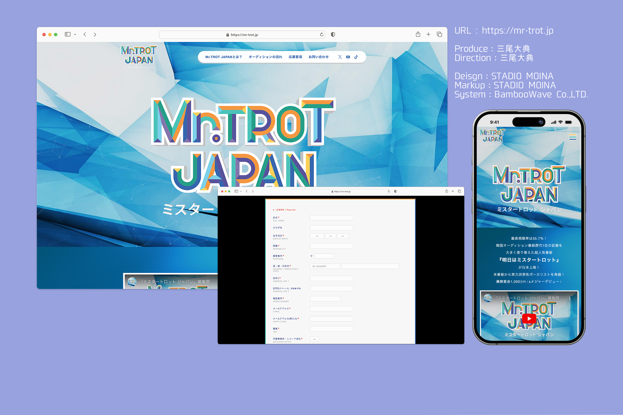 オーディションサイトのサイト、応募フォーム、管理画面制作。管理画面では応募者のステータスチェックや応募者とのメールを行える機能を設ける。