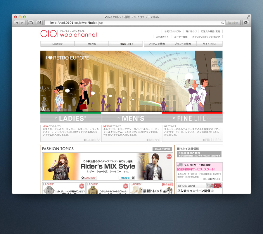 これまでにも通販サイトはいくつかディレクションを務めたことがありますが、voiのような大規模は初めてでした。総合TOP、メンズ・レディースTOP、メンズブランド一部、各レディースブランドページ、特集記事などディレクションとクリエイティブを両方手掛けました。