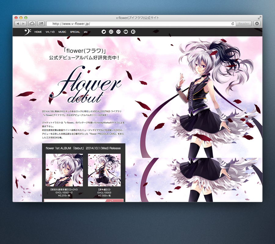 ボーカロイドとしては後進にあたるため、如何にキャラクターのイメージを伝えるかがサイト制作のポイントとなりました。