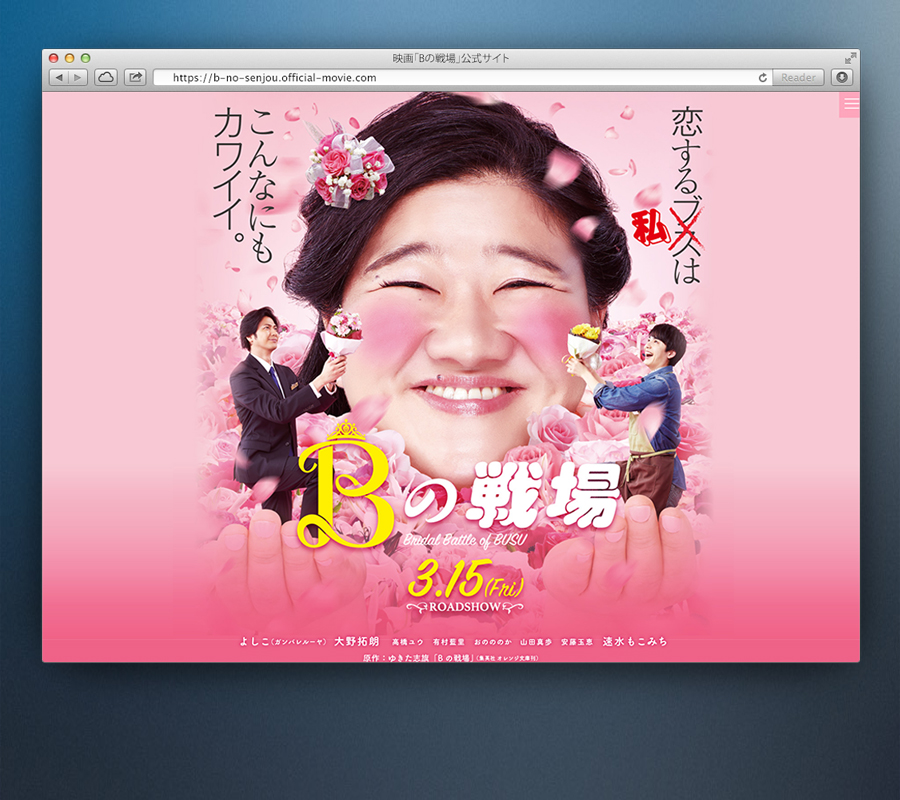 独身の男性に観てもらいたい映画です。いいビジュアルなんですが余白がなくレイアウトに苦労したサイトでもあります。SPの兼ね合いでこれも何回かモイナさんに作り直してもらました。