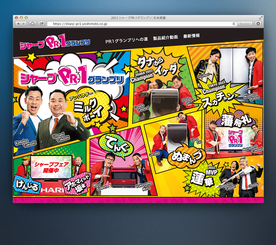 毎年行っているPR-1グランプリ。いろいろな芸人さんがでているので楽しくポップな感じを意識して構築しました。